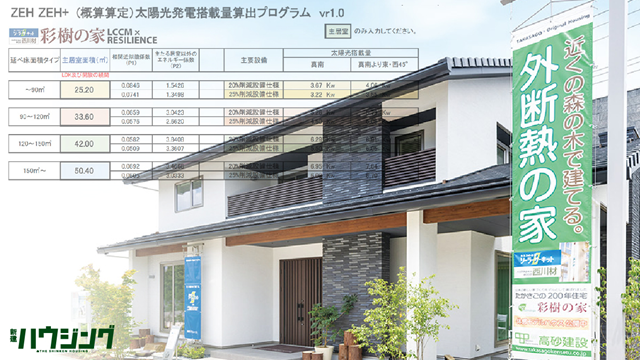 生活者にとって、太陽光発電導入の大きなハードルになるのが初期費用だ。高砂建設(埼玉県蕨市、風間健社長)は、新電力会社と連携して、太陽光発電設備の15年リースによるZEHモデル「彩樹の家LCCM× RESILIENCE」を開発。維持管理や交換を含めた太陽光発電の提案を、住宅から「切り離す」ことで容易にした。さらに、営業担当者でも容易にパネル搭載量を計算できるプログラムも開発。全国の工務店への普及も見据えた取り組みで、2021年度省エネ大賞製品・ビジネスモデル部門の省エネルギーセンター会長賞を受賞した。