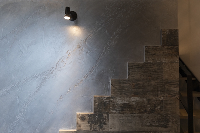 空間のデザイン性を高めるユーロスタッコは、自然素材ならではの優れた調湿効果が見込めるほか、結露を防ぎ、建物の耐久性を高めることに寄与する。同社社長の星野貴久さんは「色や表情が施工する人によって全て違い、光の加減や角度によってもさまざまな表情を見せる、クロスやタイルでは出せないところが魅力の1つ」と訴える。