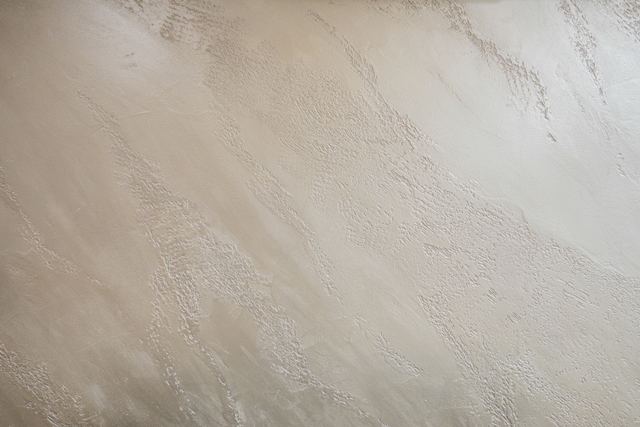 ユーロスタッコは、商材探しで定期的にイタリアを訪れる星野さんが現地で見つけ、「素材の厚みや奥行き感、天然石を割ったような風合いと表情に情熱をかき立てられた」という建材だ。星野さんは「ユーロスタッコはアート的な要素が強く、職人のクリエイティビティを刺激し、センスや技術を存分に生かせる塗り壁材」と説明しながら、一方で「施主を含む一般の人でも施工しやすいという特徴も併せ持っている」とする。施工は、1回塗りで済み、半乾きの状態でハケを動かせば自由に模様を入れることもできるという。