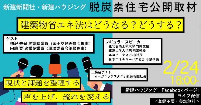 2月24日18時からの公開取材生配信は新建ハウジングFacebookイベントページから。