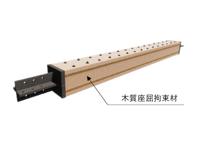 「環境配慮型λ-WOOD」は、芯材の木材とその周囲を耐火被覆する石膏ボードとの間に、接着剤を一切使用しない仕様としたもの。解体時に木材と石膏ボードが容易に分離できるため、木材の再利用が可能となるという。