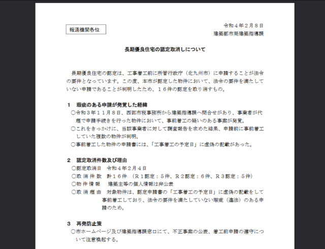 申請書類の日付が虚偽 長期優良住宅の”認定取り消し”に