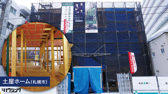 土屋ホーム(北海道札幌市)は2月28日、主要構造材に北海道産カラマツを100%使用し、SE構法で建築中の木造4階建て・賃貸アパートのオンライン構造見学会をエヌ・シー・エヌと共催した。土屋ホームによると4階建て以上の木造アパートは道内初。