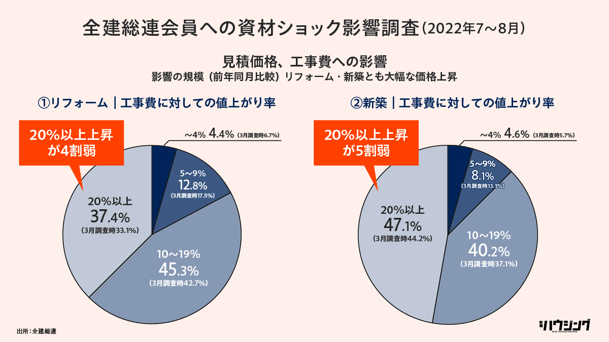 建材や設備機器の値上げ、納期遅延が相次いでいる。木材も、国際情勢の影響で価格の上昇や調達困難が予想されている。新建ハウジングではこのほど、直近2年以内に戸建て住宅を取得した生活者600人を対象にしたアンケートを実施し、資材ショックの影響についても調査。約2割が資材ショックの影響を受けたことが判明した。