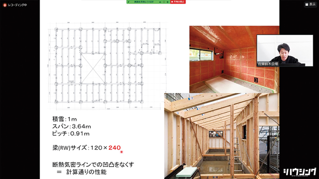 セミナーの冒頭で佐藤さんは、2025年の省エネ基準の適合義務化、住宅性能表示制度における省エネ上位等級の創設、2030年の省エネ基準のZEHレベルへの引き上げといった住宅施策の見通しに触れながら、「いま、われわれ(工務店)がすることによって未来(の人々の暮らし)が決まる。いまつくる住宅が50年、60年残っていくことを想定した時に、そこそこの性能で本当にいいのか考えながら、みんなでもっと高みを目指したい」と視聴者に訴えた。