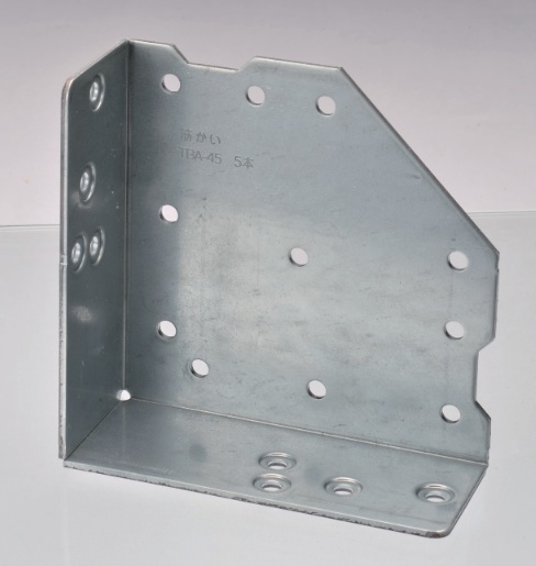 タナカ(茨城県土浦市)は、45×90ミリ以上の筋交いの接合金物「金物工法用2倍筋交い」を発売した。