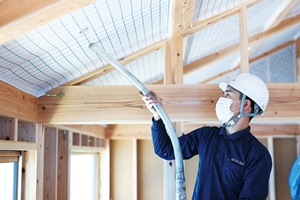 壁の断熱材が自然素材由来の材料(セルロースファイバー)であることも「呼吸する木の家」に欠かせない条件