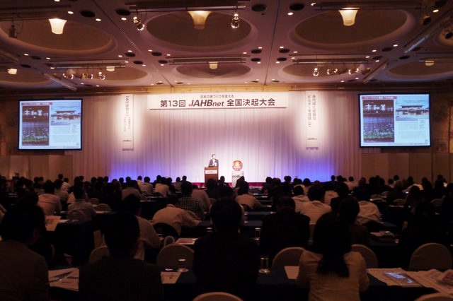 工務店ネットワークのジャーブネット(事務局:アキュラホーム、東京都新宿区)は、6月21 日と22日の2 日間、京都で全国大会を開催した。主宰者の宮澤俊哉・アキュラホーム社長は、同社の準耐火建築物における不適合について謝罪。今年度の基本方針については、東日本大震災後にニーズが高まっている「安心安全」「環境配慮」による優良な住まいづくりの強化のほか、◇「永代家守り」「暮らし守り」の推進、◇連携による「ジャーブネットブランド」の構築、◇全社が「永代続く優良ビルダー」を目指すこと―の4つを重点施策として進めるとした。