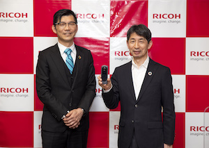 3月31日の発表会に登場した同社・リコーフューチャーズビジネスユニット Smart Vision事業センター所長の大谷渉さん(右)と同副所長の藤木仁さん(左)