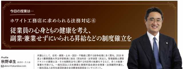 建築業界は、土曜日も工事をするのが当たり前。さらに朝早くから現場に行き、夜は事務所に戻りデスクワークをするという長時間労働を皆が実行してくれるからこそ、今の「工期」と「請負代金」が成り立っているのです。