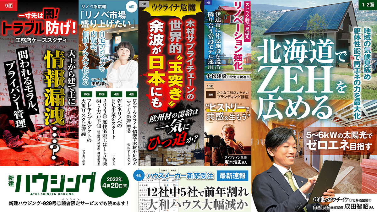 本紙最新4月20日号のトップ記事は、成田さんへのインタビューを通じて、同社の家づくりに迫ります。