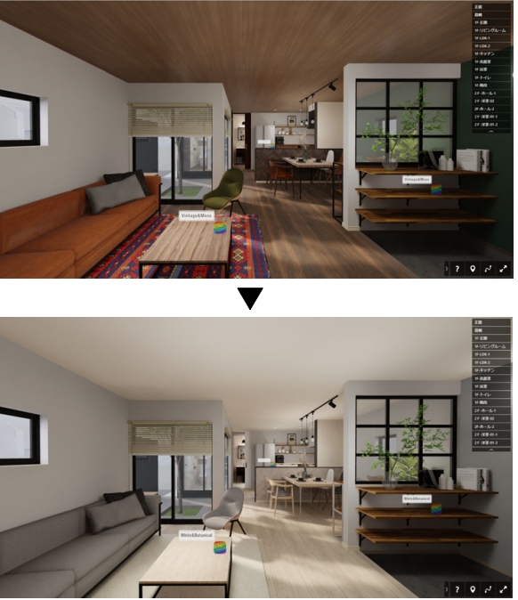 床や天井のデザインを変更した時のイメージ