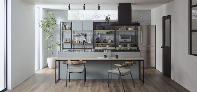 空間に合わせて扉は40色、取手は11種類5形状から選ぶことができ、GROHEブランドのオールインワン浄水栓「ミンタ」、在宅ワークや子どもの勉強の場としても使えるキッチンテーブルなどを用意した。税別79万1000円~(間口255cm、奥行65cm、シンプルプラン)。