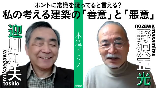 あなたに本当の「作為」はありますか—。建築家の野沢正光さんは、こう問いかけます。先般オンラインで開催された木造ドミノ研究会で、野沢さんと事務局長の迎川利夫さんが2時間にわたる対談を実施。日本の住宅、暮らし、まちづくりの姿や問題点、課題とそれに対する向き合い方まで議論しました。社員20人のうち半数を刻みができる大工が占める、なんば建築工房(岡山県倉敷市)は、職人技術を生かせるリフォーム事業の拡大を図りながら、特に地域性を考慮して、古民家リフォームに力を入れています。伝統の職人技術を継承する同社の“らしさ”が生きる戦略に迫りました。