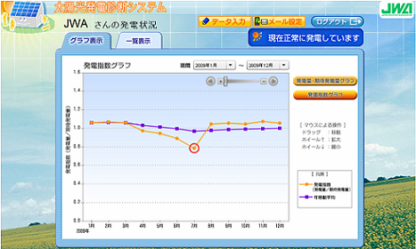新システムの名称は「PV-DOG」(ピーブイドッグ)。NEDO(独立行政法人 新エネルギー・産業技術総合開発機構)などとの提携で蓄積したノウハウを生かしたシステムで、太陽光発電システムを設置した各家庭の発電実績と、最寄りのアメダス地点の気象データなどから推定した「期待発電量」を比較することで、太陽光発電システムが正常に稼働しているかを簡易に診断する仕組み。
