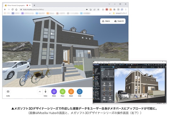 メガソフト(大阪市)は、作成した住宅の3Dデータをメタバース空間にアップロードできる形式(GLBファイル)に出力する新機能を開発。今年3月に発売した住宅プレゼンソフト「3DマイホームデザイナーPRO10/PRO10EX」など5製品に搭載するとともに、「3D住宅リフォームデザイナー」などのその他シリーズ製品にも順次追加していく。