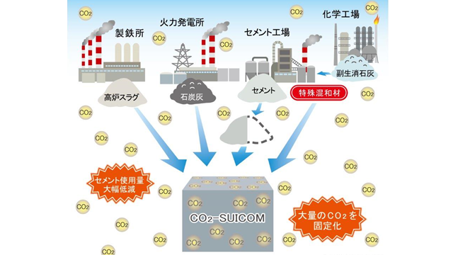 3Dプリンティングに使用する材料には、鹿島らが開発した環境配慮型コンクリートCO2-SUICOM(シーオーツースイコム)を適用。これにより、コンクリートの製造過程において大量のCO2を強制的に吸収・固定化させ、CO2排出量をゼロ以下にできるという。1m3のCO2-SUICOM製品を造形した場合、-18kgの脱炭素に貢献する計算になる。