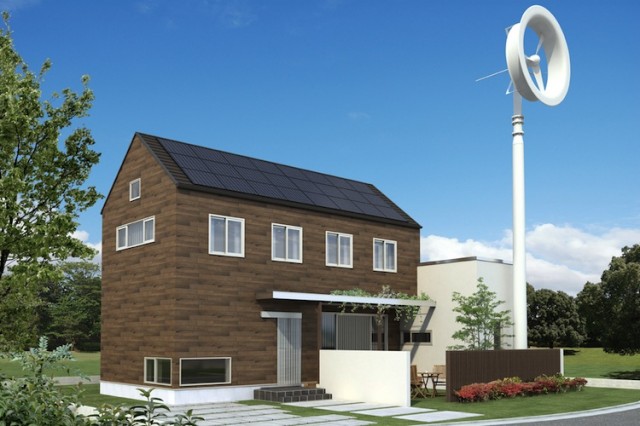「ゆとりの家プラス」は、2階建てでありながら小屋裏空間を含め5層のスペースをもつフロア構成と坪40万円〜のリーズナブルな価格帯が特徴。蓄熱式床暖房、高効率小型風力発電、太陽光発電(3.4kW)、HEMS、空気循環システムといった創エネ・省エネ設備を付け加えることでスマートハウス化も可能とする。