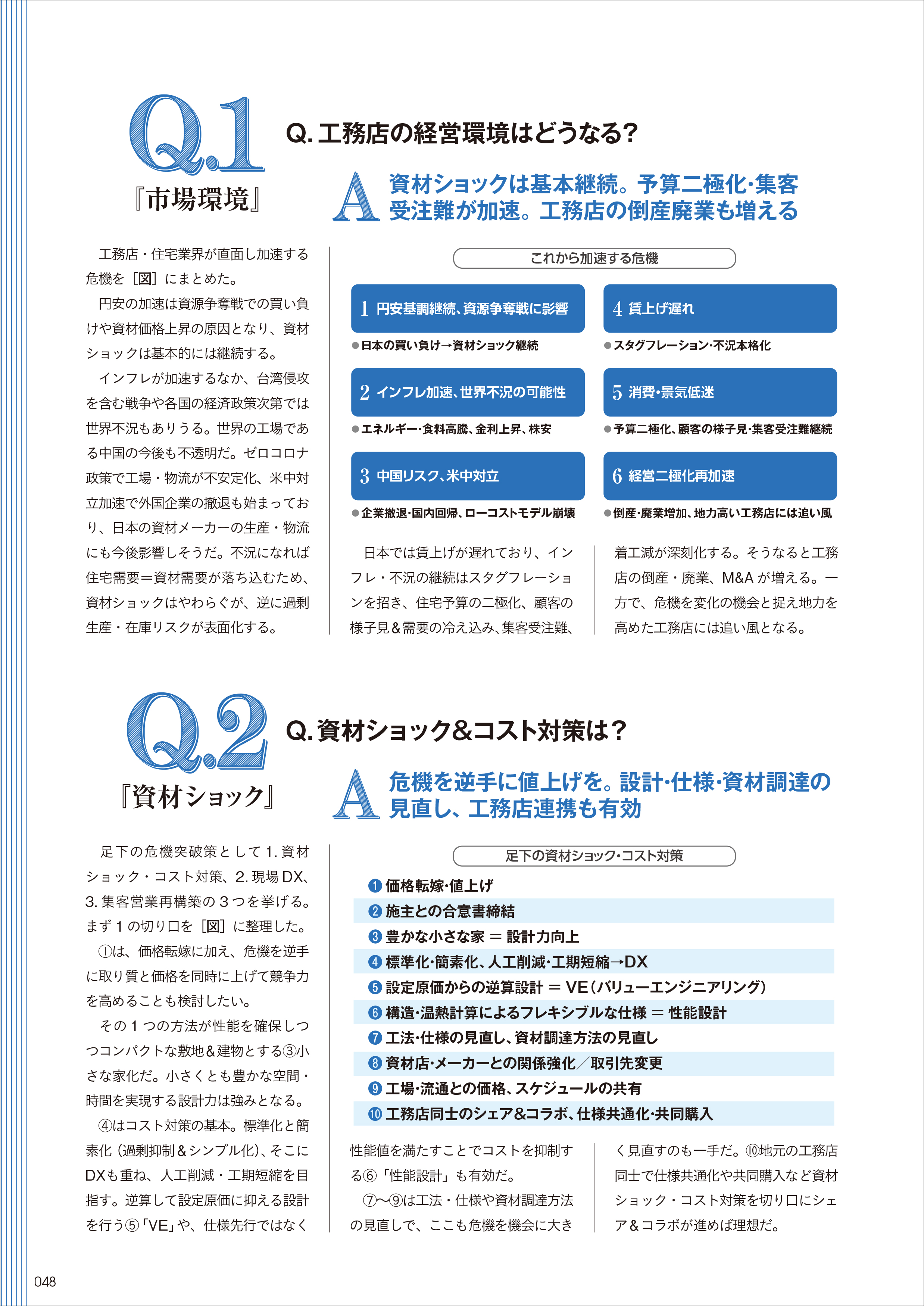 コロナ禍におけるウクライナ情勢に伴う原油価格・物価高騰、上がらない給料、住宅業界を直撃する資材価格の高騰など、工務店が直面する危機的な状況を挙げれば枚挙にいとまがない。