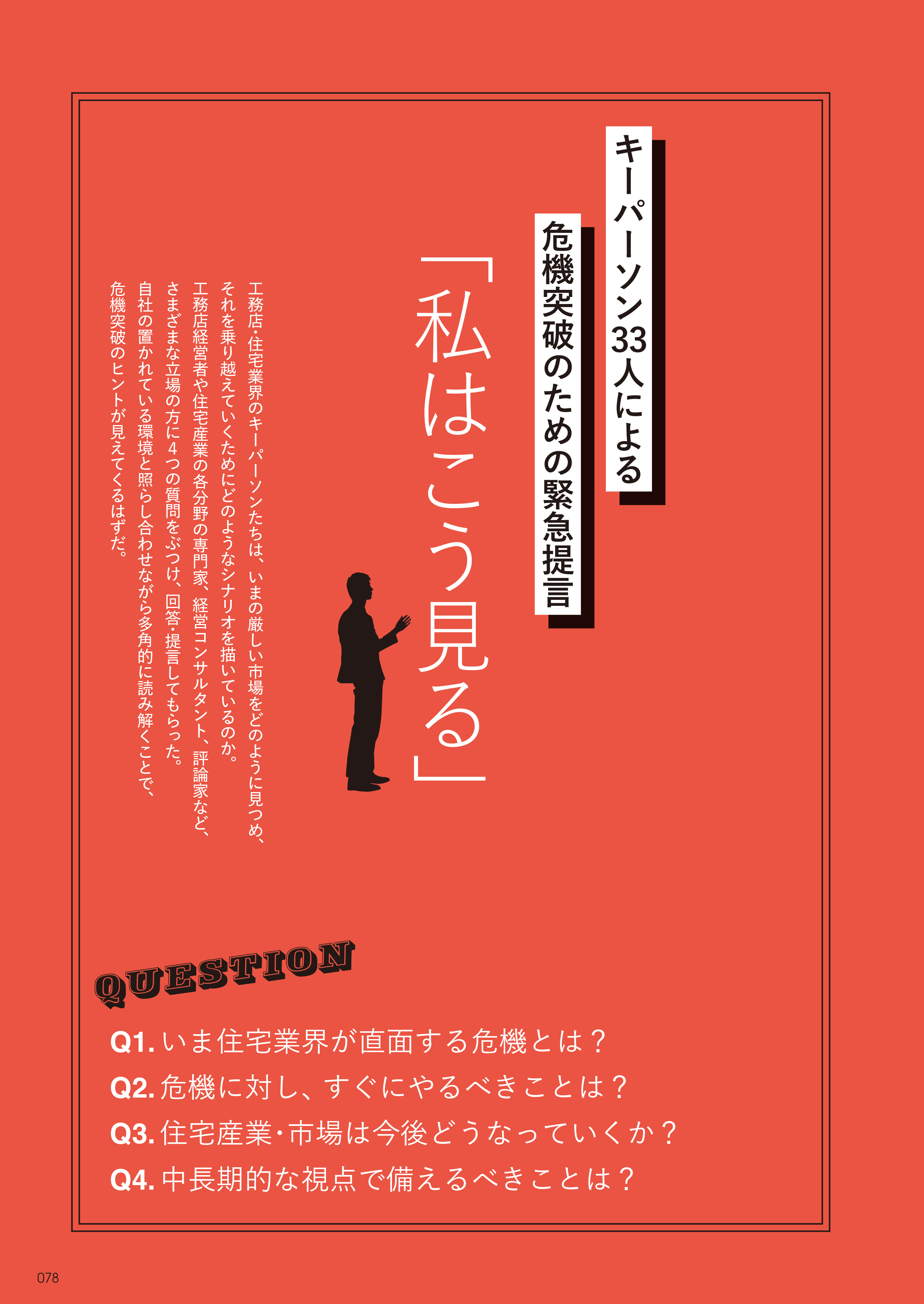 しかし、家づくりと家守りを担う地域工務店は絶対に生き残らなければならない。この危機を突破しなければならない。地域と、地域の生活者のために、そしてそこで働く人たちのために。