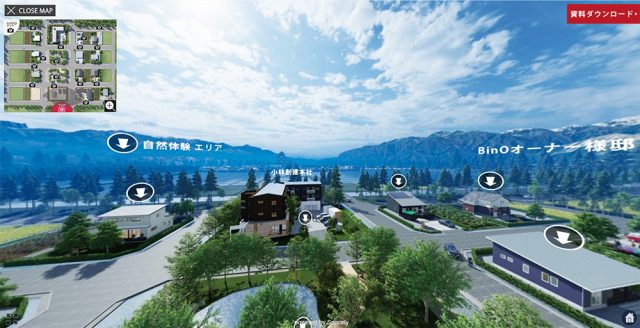 小林創建(長野県松本市)は5月、インターネット上にVR(仮想現実)を活用した住宅展示場「小林創建VRタウン」を公開した。リアルに近い感覚で場所や時間を問わずに気軽に同社の家づくりを体感できるネット上の拠点で、ネットを駆使して情報収集しながら家づくりを検討する人たちへのプロモーション強化を狙う。