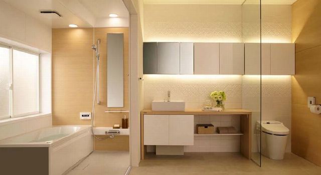 浴室と一体感のあるスタイルを実現できるのが特徴。カウンターは高級感のある木目調で、ソフトチェリーなど3色展開。水栓にはハンスグローエ社のシングルレバーを採用している。