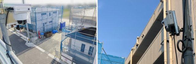 定点カメラの『Safi e GO』シリーズは、足場の単管パイプに固定し電源にさすだけですぐに使うことができる