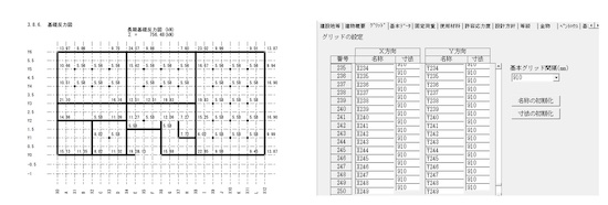 3号建築申請時に要求される図書を追加するなど、使いやすさを向上。新たに、基礎反力図の計算・出力機能、柱のプロパティに「金物」を追加したほか、最大通り数(250)や応力図を出力する通りの仕様を変更した。さらに、構造規定のチェック機能を強化し、「転倒モーメントによる短期接地圧の検定」に関わる項目として許容応力度・基礎・基礎版面積などの入力を布基礎にも対応できるようにした。