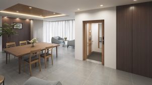 こどもみらい住宅支援事業などの補助金により家庭用エレベーターが設置しやすくなっていることに加え、賃貸住宅や教育施設では業務用エレベーターよりも低コストで導入できる小型エレベーターの需要が高まっていることを受けて、ホームエレベーター・小型エレベーターを7年ぶりに刷新。