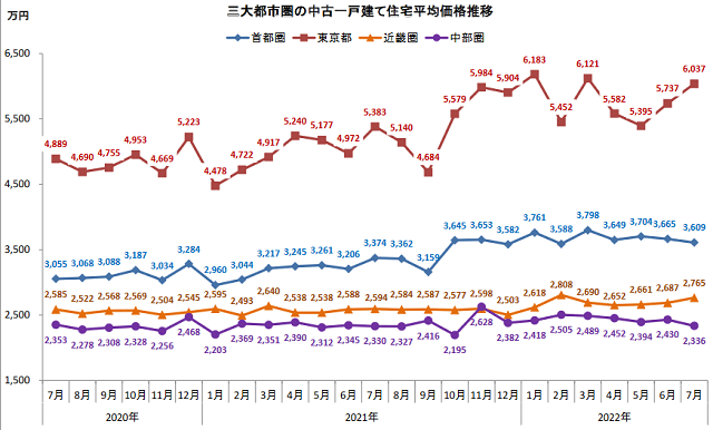 東京カンテイ(東京都品川区)はこのほど、7月の主要都市における中古木造一戸建ての供給動向を発表した。首都圏・中部圏は下落、近畿圏は3カ月連続上昇した。