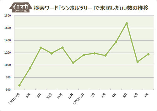 2011年5月1日~2012年6月30日の人気キーワードベスト10は以下の通り。1位「イエマガ」、2位「間取り」、3位「家を建てる 費用」、4位「シンボルツリー」、5位「家を建てるには」、6位「太陽光発電 仕組み」、7位「土地探し」、8位「リビング階段」、9位「キッチン」、10位「家 間取り」。