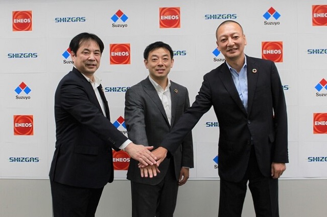 左から:鈴与商事(水野正信取締役GX企画部長)、ENEOS(川副徳太郎リソーシズ&パワーカンパニー電気事業部長)、静岡ガス(松本尚武執行役員経営戦略本部長 兼 経営企画部長)