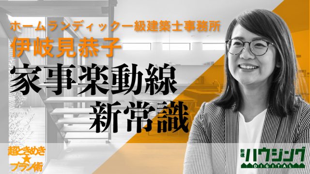 国立社会保障・人口問題研究所の「第6回全国家庭動向調査」(2018年)によると、既婚女性は1日あたり4時間23分(平日)を家事に費やしているという。コロナ禍ではむしろ、女性の家事負担が増えたという声さえあり、家事の場である住まいをデザインするうえで、“家事楽”の重要度は増す一方だ。YouTubeでもしばしば間取りや動線の知識を発信しているホームランディック一級建築士事務所の伊岐見恭子さんに、家事楽な家づくりのヒントを伺った。