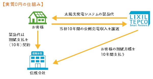 「建て得」シリーズは、指定のLIXIL商品購入者を対象に太陽光発電システムを割賦販売し、同社が顧客の10年分の余剰売電収入を得る代わりに、毎月の割賦支払いに充てることで、太陽光の導入にかかる製品代負担を実質0円にするサービス。