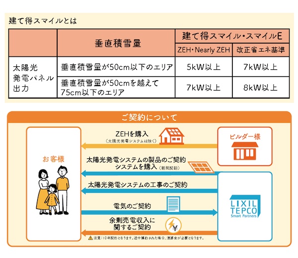 LIXIL TEPCOスマートパートナーズ(東京都江東区)は、高性能住宅向けに、太陽光発電システムの製品代が実質0円、発電した電気を0円で使える新サービス「建て得スマイル」の提供を10月1日に開始する。