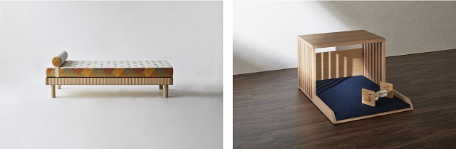 第1弾では、ウォールナットの同形状のパーツを積み重ねることで意匠性をもたせたテーブル「YUI-01」や、無垢材とレザーを組み合わせたソファなどを提供。「cazari meets asakusa」シリーズでは、浅草周辺のさまざまな伝統産業を家具に取り入れ、日本文化や伝統産業の魅力を発信する。同シリーズのカウチソファ「EN-01」では、使われなくなった着物の帯をデザインに取り入れている。