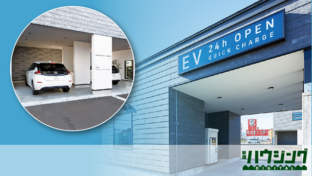 新潟県内では唯一、ZEHビルダー評価制度で6つ星評価を得た西脇建設(新潟県妙高市)は今年5月、新社屋の建設に合わせ、電気自動車(EV)の充電スタンドを敷地内に新設した。また、社屋もHEAT20・G2レベルの躯体に太陽光パネルを載せてゼロエネ化し、V2H設備も設置。社長の西脇直也さんは「未来に負の遺産を残さない」ためにも、ZEHとEV双方の普及に力を注いでいる。