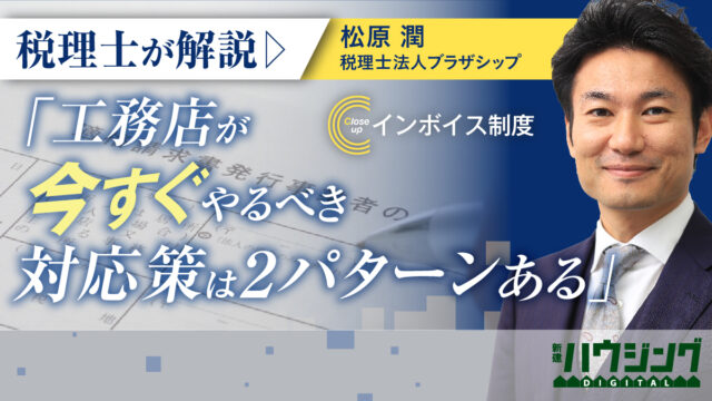 インボイス制度(適格請求書等保存方式)が 2023年10月1日からスタートする。消費税率や税額を記載したインボイスは、課税事業者でなければ発行できず、 免税事業者の一人親方らにとっては税負担が増える可能性がある。本紙が工務店へのヒアリングを実施した結果、本格的な対応に踏み切っている工務店はまだ少ないことが浮き彫りになった。そもそも、どう対応していいか迷っている工務店も少なくなさそうだ。税理士法人ブラザシップ(愛知県小牧市)代表の松原潤さんに、対応策や注意点を解説してもらった。