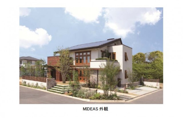 MIDEASは、高断熱・高気密に創エネ・蓄エネ技術を組み合わせたLCCM住宅(CASBEE戸建ー新築:2010年版、環境効率S☆☆☆☆☆:申請中、LCCM住宅☆☆☆☆☆:申請中)。