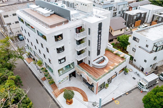 同施設は、昭和61年(1986年)に建てられた鉄筋コンクリート造の5階建てビジネスホテルを、構造躯体を活かしながら再構築することで複合施設へと再生したもので、千葉公園に隣接する立地で街の拠点となる場所を目指すという。