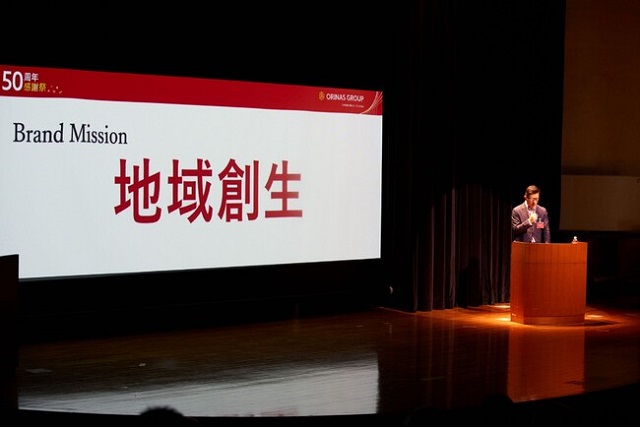 ロゴのデザインも一新。シンボルマークは、地域・顧客・ORINAS GROUPの3つの想いを、織り重ねて作られる鞠をモチーフにデザインした。カラーは、えんじが地域、黄が顧客、白がORINASを表し、網目の柄と合わせてそれぞれの未来や可能性、長寿への願いが込められている。