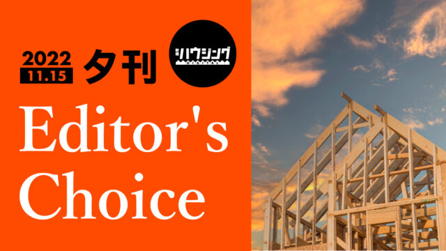 きょうの注目トピックを振り返る新建ハウジングDIGITALの夕刊Editor’s Choice。工務店事例や行政、メーカー、生活者動向など、あらゆるニュースの中から、現場で役立つ情報をタイムリーに平日の夕刻にまとめてお届けします。11月15日の夕刊では、経営者の住宅景況感やトップ直撃インタビュー、インボイス制度の最新動向をピックアップ。この後も最新ニュースを続々と配信します。