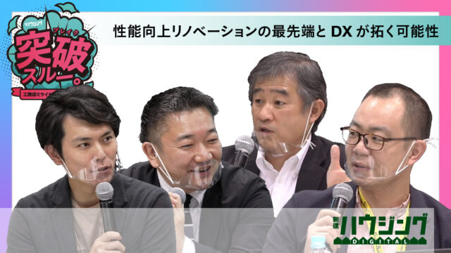 新建ハウジングは10月26・27・28日の3日間、東京ビッグサイトで行われたジャパンホーム&ビルディングショー会場で、“突破(ブレークスルー)”をテーマとして掲げ、「工務店ミライセッション」を開催。オンラインでも配信した。地域工務店が厳しさを増す市場を突破し、工務店らしい家づくりと経営を未来へとつないでいくためのあり方を議論。27日の「性能向上リノベーションの最先端とDXが拓く可能性」では、性能向上リノベをDXでいかに実践し、普及させていくかを議論した。