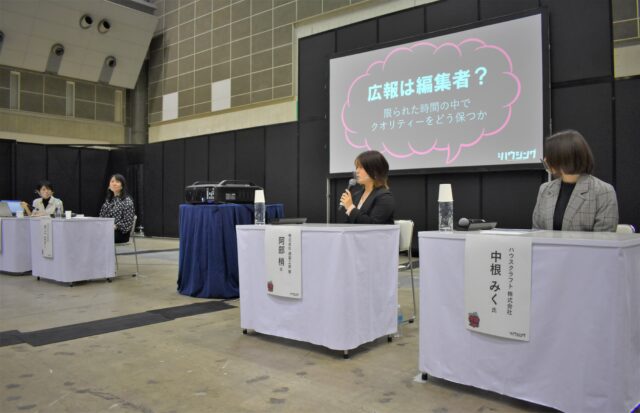 建築工房零の阿部梢さんは、近年はイベントの立ち上げや企画運営なども多く、広報はディレクター的な立ち回りが求められているとしたうえで、「積極的に社内広報をして、理解を深めていく発信も大切」と述べた。