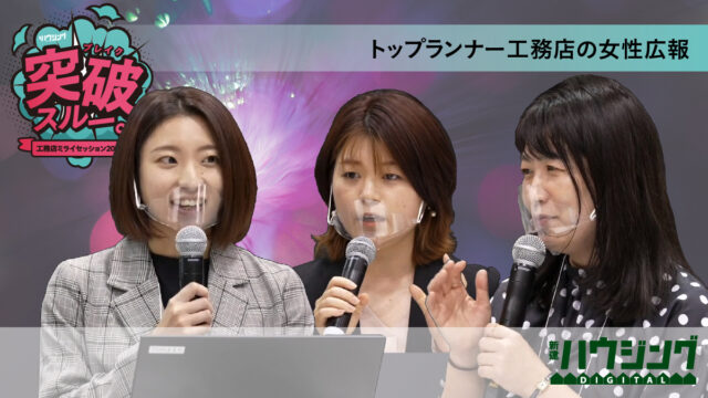 28日の「トップランナー工務店の女性広報」セッションでは、女性広報3人を招き、コロナ禍において広報活動をどのように行ってきたか、工務店の“編集室”ともいえる環境のつくり方、今後どのようにプロモーション方法を選択・実践していくかなど、これからの工務店広報のあり方をディスカッションした。