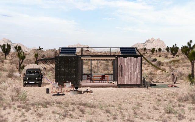 屈強さや機能性のほか、サステナビリティも特徴のひとつ。パーツを修理・交換しながら長く使い続けることを前提に設計されているほか、電気自動車の開発にも力を入れている背景から、経年変化を楽しむことができる鉄材やリサイクル可能な木材をふんだんに使用している。屋上にはソーラーパネルを設置。また、組み立て式のコンテナハウスのため、家族のライフステージに合わせて使い方をアレンジすることもできる。