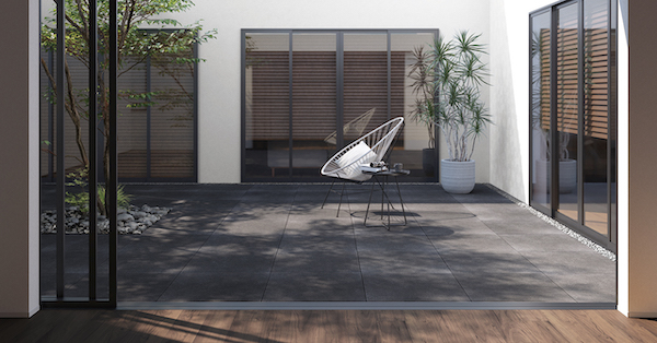 日本の住宅で使われることが多い300角ではなく、600角と600×300角の大きなサイズに特化。ブラック、グレー、ホワイトの3色をラインアップした。屋内外の土足部のみ対応、耐凍害仕様。厚9.5mm。