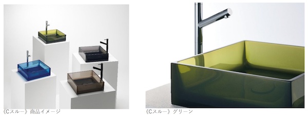 サンワカンパニー(大阪市)は、ポリエステル系樹脂素材”Cマテリアル”を使ったクリアカラーの洗面ボウル「Cスルー」を発売した。