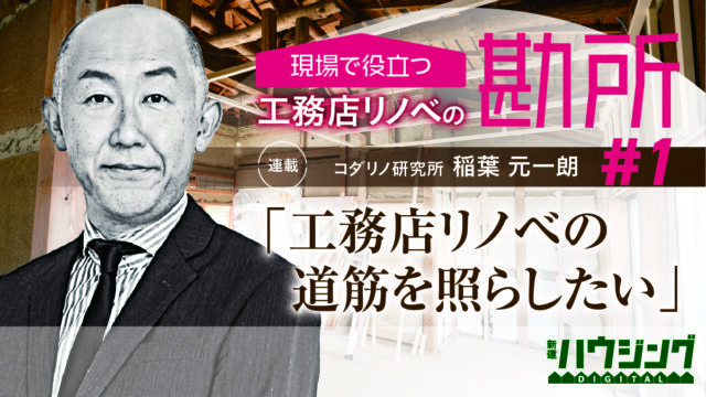 16日から新建ハウジングDIGITALで、コダリノ研究所(神奈川県横浜市)代表の稲葉元一郎さんによる連載「現場で役立つリノベの勘所」がスタートしました。稲葉さんは連載の中で、「リノベは属人的な事業で再現性をともなったビジネスモデルとして掴みにくく、これまで情報が共有されてこなかった背景がある(中略)」と指摘します。まさにその通りで、これは私が工務店取材をしていてもよく聞く言葉です。ではどうすれば良いのかと言うと、それはぜひ連載をご覧いただきたいのです。ケーススタディを交えながら解説しております。