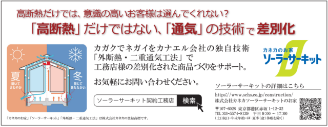 さらに言えば、断熱性能は比較的容易だが、気密と通気を高いレベルで確保するとなると施工や管理の手間がかかり、量産型のハウスメーカーやビルダーは追随しにくいこと。木材を扱う会社として、木にとって最適な“通気 ”が得意な技術であり、同社の強みである在来軸組や自社大工との相性がいいこと。営業・施工のノウハウがすでに社内にあり、ブランドを最速で立ち上げられること。十数年ソーラーサーキットの家で暮らしてきた経験値をもとに、顧客に住み心地を説明できること―これら複合的な理由が再加盟を後押しした。